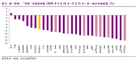 在 2003 年 4 月中旬开始,国内部分省份、地区相继被列为疫区,大量中小学停课,“五一”假期取消,“非典”的社会影响快速发酵。随着全社会大规模防治开始,5 月后疫情逐步得到控制,2003 年 6 月初,广东、北京连续多日未新增病例,6 月 24 日世卫组织解除对北京等地区的旅游警告标志着“非典”疫情告一段落。因而 2003 年 4 月 16 日-2003 年 6 月 24 日期间是“非典”疫情对社会和资本市场冲击最大的时期。