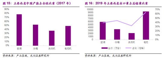 中国为全球家电产能中心,如何看待板块海外业务。根据产业在线统计,