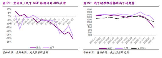 我们在 2020 年度策略报告中指出,竞争将是行业今年的主旋律。而一季度出现了预料外的疫情影响,整体需求收缩。无论是动销压力,还是对于自身增长的诉求,龙头都将进一步提升对于份额的诉求。行业的价格竞争会更加激烈,且会从空调逐步向冰洗、小家电等领域扩散。1~2 月空调均价下降幅度已经达到 20%~30%,美的海尔在天猫平台 1.5P 一级能效变频挂机的促销价格已经低至 2000 元左右。而小家电部分品类价格也出现收缩趋势。