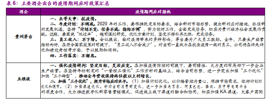 2) 重视经销商利益,给经销商减压松绑:由于此次疫情对白酒的春节旺季消费产生直接影响,节后各价格带白酒的经销商均反馈出不同程度的库存压力和产品价格压力。针对经销商的反馈,酒企在维持全年增长目标的同时,均提出针对经销商现状的支持手段和政策,包括对经销商提供供应链金融等资金支持、提高费用投放力度和流程便捷性等。