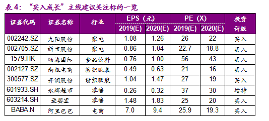 在此主线下光大消费团队建议关注九阳股份、新宝股份;颐海国际;南极电商、开润股份;永辉超市、爱婴室;阿里巴巴、美团点评;顾家家居、欧派家居。建议关注标的具体信息如下。