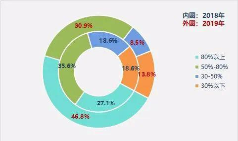 与此同时,专业机构投资者的股票持仓仓位亦明显提升。其中,仓位在50%以上的机构占比从2018年的62.7%升至2019年的77.7%,仓位在80%以上的机构占比从27.1%升至46.8%。