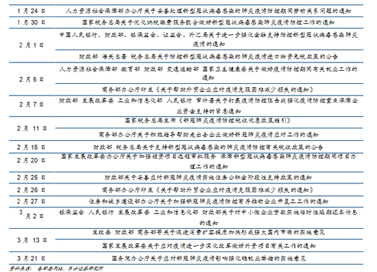 为应对新冠肺炎疫情对社会经济的冲击,国内各部委从财税、就业,金融支持等多方面对此次疫情波及的相关产业进行扶持。
