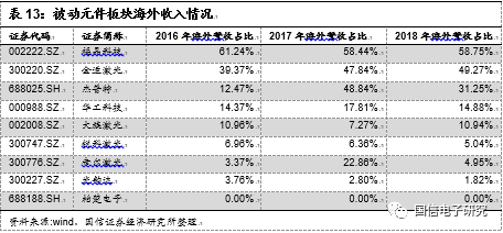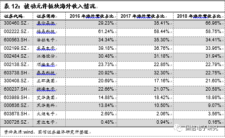 我们梳理了A股被动元件公司2018年海外收入情况: