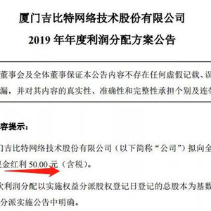 今年最土豪的分红来了。吉比特今日发布年报,公司去年实现净利8.09亿元,同比增长11.93%,拟向全体股东每10股派发现金红利50元(含税)。