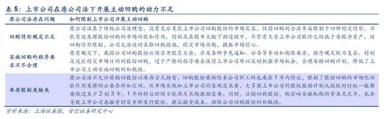公司法修正案正式通过后,上市公司回购股票的情形得以扩展,并且回购流程进一步简化,库存股也得到了引入,未来A股被动式回购占比较高的格局或将逐渐扭转。