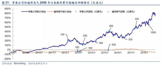 公司回购股票之后,其股价的涨跌情况不仅仅会受到回购金额大小、回购股份占总股本比例等指标的影响,同时也与公司所在的行业、公司经营业绩等其他因素息息相关。为了分析股票回购后公司股价的变动情况,我们选取了苹果公司和通用电气这两家具有一定典型性的美国上市公司作为研究对象。