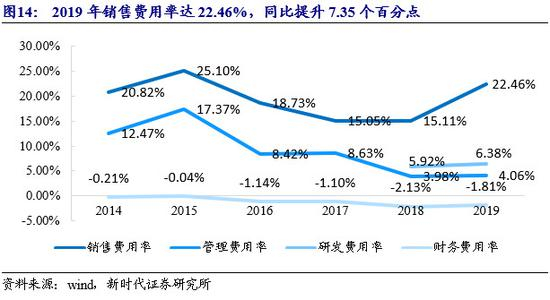 加大用户投入力度,销售费用率达22.46%,同比提升7.35个百分点。由于公司付费与免费模式相融合的运营战略,2019年公司加大了用户投放力度,销售费用4.22亿元,同比增长47.03%,销售费用率由15.11%上涨至22.46%;同时,公司持续注重技术研发投入,2019年研发费用为1.2亿元,同比增长6.56%,研发费用率由5.92%上涨至6.38%。