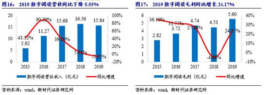 付费+免费融合,商业化增值服务初显成效,数字阅读毛利高速增长。数字阅读平台收入15.84亿元,同比下降5.55%。报告期内公司不断提升数字阅读相关技术,持续改进产品,提升用户体验同时改进运营模式,公司基于付费和免费模式融合的运营策略,适度尝试商业化增值服务,虽然付费阅读收入略有下降,但数字阅读平台商业化增值业务增速较快,使得数字阅读平台毛利达5.6亿元,同比增长24.17%。
