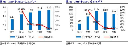 用户规模不断扩大,MAU达1.4亿人。2019年公司用户规模持续增长,MAU达到1.4亿人,同比提升17%,保持行业领先。