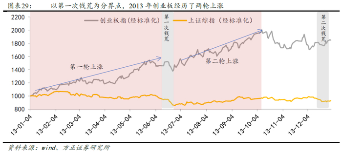 4.1 以第一次钱荒为界,创业板经历了两轮上涨