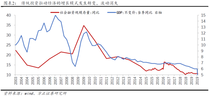 本质是经济增长模式的转型。尽管2012年开始,我国进行了又一轮的经济刺激计划,但效果不佳,经济并未如期回到高增长轨道,仅表现为降幅趋稳,说明我国的潜在经济增长率已经回落。每一轮的刺激都伴随着杠杆率的加快提升,需求侧的刺激带来的风险已经大过了经济增速的小幅滑落,2009年后依靠债务扩张拉动经济增长的模式已经具有较高风险。我国经济面临转型,产业亟待升级,恰逢2013年新一届政府上台,并不断出台关于经济结构调整与大力发展科技创新产业的支持文件,市场的政策预期较高,并且给与科技创新引领的新经济模式以较高的溢价。同时自2013年后,我国经济开始失去波动,经济正式进入转型期,转型并非一蹴而就,但新经济模式给与了市场较大的想象空间,映射到市场层面就表现为成长风格的大幅上行。