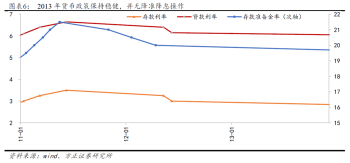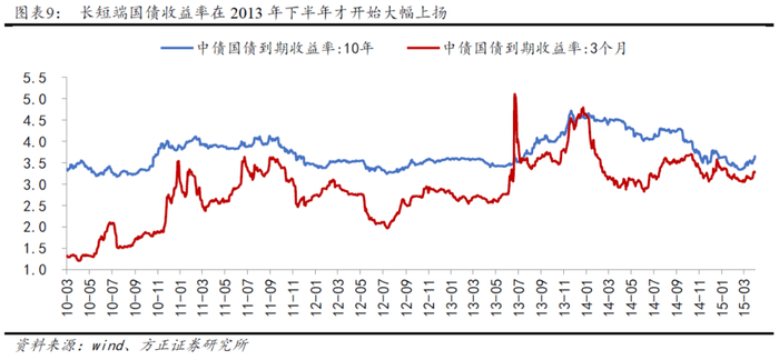 债市下半年走熊,债务问题纳入决策框架。经过2012年的两次降准降息,债券市场在进入2013年后并无对货币政策进一步放松的预期,且2012年7月19日央行超预期上调逆回购利率5BP已对未来政策走向有所暗示,因此尽管2013年第一次钱荒前,通胀回落且经济再次出现掉头向下的态势,长端利率仅表现为窄幅波动和小幅下行。此后,6月出现钱荒,下半年通胀及工业增加值开始触底回升,12月出现第二次钱荒,债券基本面被打破,长端利率出现了明显上行,下半年债券市场出现了大熊市。更加深远的影响是2013年后,我国央行的独立性明显提升,其一是经过两次钱荒和压缩非标的行动,市场开始明确央行已将宏观杠杆率纳入决策框架,从此货币政策空间开始受到经济增长,通胀杠杆率的三者的共同制约。其二是2013年后我国的外汇占款开始走平,央行对于货币政策的操作空间与话语权开始提升,公开市场操作对于全市场的指导意义进一步加强。