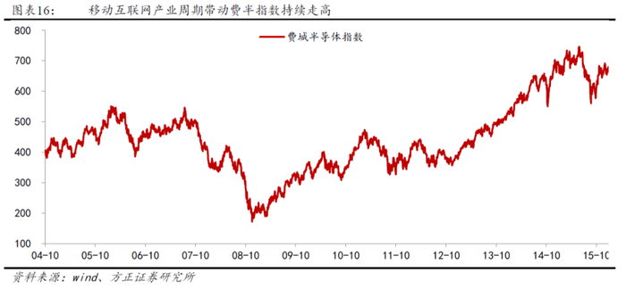 传统科技产业周期上行与新需求共振构筑了成长牛的底层逻辑。科技产业长期向好趋势的确立往往伴随着新老需求的共振。经历了2012的低迷之后,2013年全球半导体产业迎来了温和复苏,智能终端、电视与计算机等传统的消费电子产品销量回升,推动半导体营业收入的快速增长,“传统”科技产业步入上行周期。同时,2010年iPad问世,此后三年,三星、华硕、LG、亚马逊、谷歌纷纷推出各自的安卓系统平板电脑,组成了第一批安卓平板阵营,国内平板品牌也相继问世,推动了平板电脑在国内的快速普及,2013年iPhone4的火爆与我国4G建设加快相契合,移动互联网时代来临,全球智能手机制造商开始纷纷推出大屏幕产品,推动了智能手机、平板电脑、面板、摄像头、光模块等重要消费电子及零部件订单的增长。普及率快速提升后,下游应用开始具备了爆发的契机,使得“新兴”科技的需求量进一步大幅增加。新老需求的共振使得2013年全球科技产业走势喜人,费城半导体指数2013年全年上涨39.31%。
