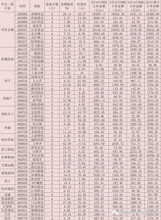 表:连续3天实现大单资金净流入的连涨股