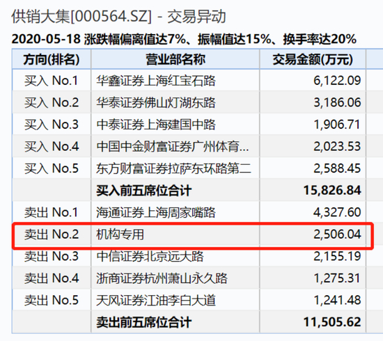 5月18日龙虎榜显示,卖出席位有机构现身,卖出金额2506万,5月15日、5月13日、4月24日、4月21日也均有机构席位出现在卖出前五大名单中。在5月13日的卖出前五席位中,还出现了深股通专用席位,卖出1688万,买入968.71万。