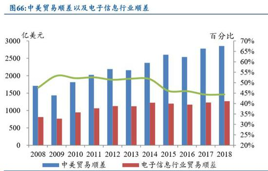 中美贸易摩擦的解决不会一蹴而就,反复摩擦将是常态。日美贸易摩擦从 1960 年开始一直延续到 1990 年,其中电子制造业战争集中发生在 1985 年到 1991 年,美 国用 6 年时间改变了日本电子制造业的生产和出口结构,我们认为中美之间贸易摩 擦将是主流,尤其对于电子制造业而言,近年来中美贸易顺差总额为 2500 亿美元左 右,电子信息行业贡献占比 45%,因此电子行业必将成为中美贸易双方最为瞩目的 行业,有可能会招来美方更多的限制措施。