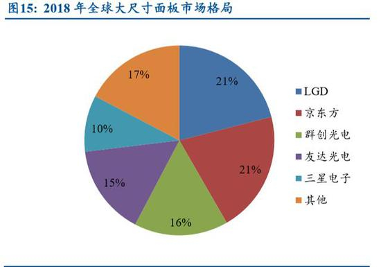 JDI 专注于中小尺寸面板市场。2017 年全球显示面板出货面积约 2.01 亿平米, 其中大尺寸面板出货面积合计约 1.81 亿平米,占比达到约 90%,中小尺寸面板出货 面积合计 0.2 亿平米。在大尺寸面板市场中,主要还是由韩国、中国大陆和中国台湾 的企业所瓜分,在中小尺寸面板市场中,韩国三星电子和 LGD 占据行业第 1、第 3, 日本 JDI 排名第 2。