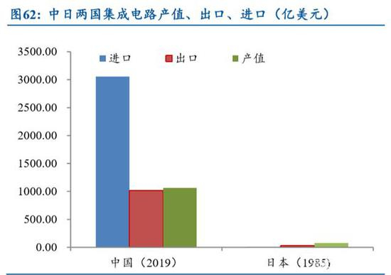 中国电子制造业在全球是“参与者”而不仅仅是“供给者”角色。我们以集成 电路行业为例,中国 2016 年集成电路进口 2270 亿美元,本土产值 652 亿美元,出 口 614 亿美元,本土总产值与出口额相近,说明本土产品或服务基本都是用于出口, 中国集成电路行业封装环节产值占比达到 36%,封装占比高说明中国集成电路出口 基本都是给国际厂商提供封装服务,同时中国每年进口 2270 亿美元,出口额与进口 额相差较大与中国集成电路行业本身产业结构有关,中国一方面提供封装服务,同时从国际市场进口大量集成电路成品,说明中国集成电路在全球市场是“参与者” 的角色。日本集成电路行业在 1985 年时总产值达到 80 亿美元,而出口和进口分别 只有不到 30 亿美元和 6 亿美元,极少的进口额和极高的总产值说明日本半导体产品 基本不需要参与国际分工,其 IDM 的模式可以实现自给自足,同时日本当年的出口 额是进口额的接近 5 倍,如此大的差额比中国当前的结构更容易遭受贸易摩擦,而 事实上日本集成电路行业当年就遭到了美国的多次反倾销调查。