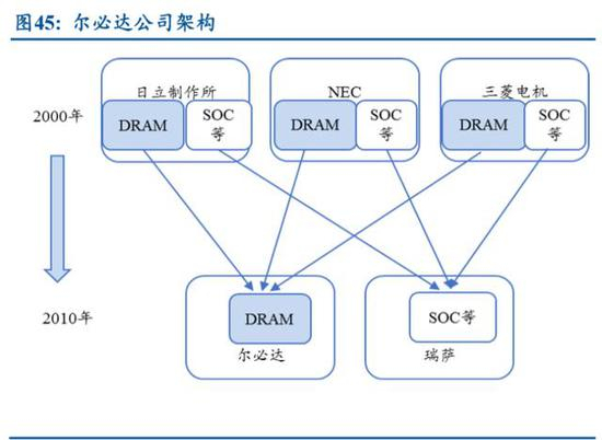 强强联合的尔必达也未能挽救日本的 DRAM 行业。1999 年底,日立和 NEC 合 资成立专门生产 DRAM 的公司尔必达,当时普遍认为尔必达是“强大技术研发实力 的日立”和“强大生产技术的 NEC”合二为一,由此将诞生世界上最强大的 DRAM 制造商。甚至后来还有三菱电机的加入,但是尔必达的命运却以破产倒闭而告终。