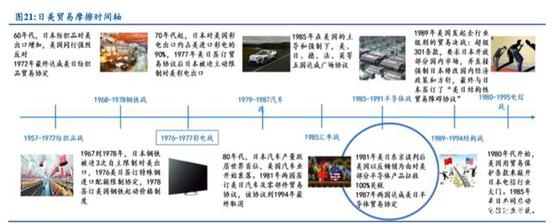 但是在行业层面看日美贸易摩擦在电子制造业领域开始于 1985 年之后,尤其是 在半导体领域。早期,日本凭借低价芯片对美国产业造成重大冲击,美国以反倾销、 反投资、反并购等手段进行贸易保护,最高时对相关产品加收 100%关税。因此本报 告所指贸易摩擦是指电子行业层面的贸易摩擦,相关时间节点以 1985 年为界。