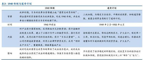 战后日本原材料奇缺、生产开工率低、物资供给匮乏并且通胀恶劣,为迅速度 过经济混乱和生产衰退的难关,日本政府在 1947 年到 1951 年推行著名的倾斜生产 方式,集中力量增加煤炭、钢铁等基础工业的生产,从而使得日本经济能重新进入 再生产的循环轨道,到 1948 年,工业生产指数已由战败初年的 30%左右上升到 60% 以上,严重的经济混乱、生产滑坡局面已经过去。我们把日本战后所使用的倾斜生 产以及特殊行业贷款政策等统称为“1940 体制”。但“1940 体制”后遗症也非常明显,其中最引人注意的就是通胀,在推行倾斜生产期间,尽管政府通过多种手段控 制物价上涨,通货膨胀率仍居高不下,两年间消费物价上涨 7 倍。