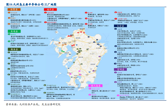九州岛被称之为日本的“硅岛”, 是日本集成电路工业的重要基地。因为九州 岛富含硅片洗净工程所需超纯水(九州岛阿苏外轮山周边有丰富的泉水)、电力充足、 航空运输便利(九州岛现有 13 个机场)、税收政策对企业有利、生产成本较低等有 利条件吸引了大批半导体企业。从上个世纪 60 年代起,九州逐渐成为半导体企业群 聚的地区。东京电子、索尼、瑞萨科技、SUMCO 等都在九州设有生产基地。九州岛 半导体企业众多,且因为有知名大企业牵头,所以是拥有世界级尖端半导体技术的 地区。全球约有 15%的半导体硅片在九州生产,九州岛半导体年产值为日本全国年 产值的三分之一左右。