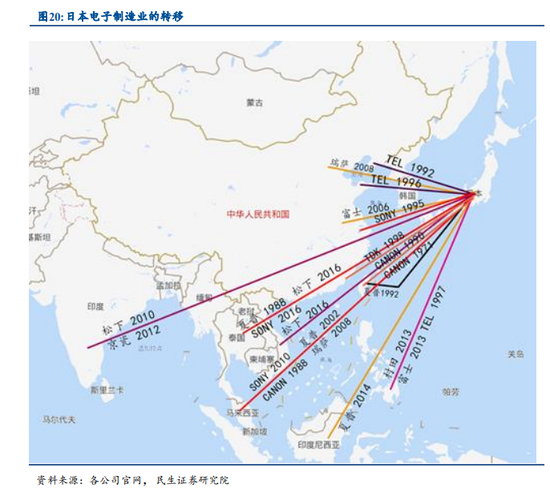 (三)日本电子制造业的转移:终端组装加速海外拓展,主要 流向东南亚国家