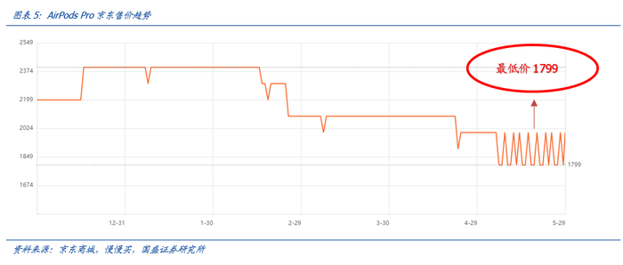 同时5月25日,在苏宁易购618的云发布会上,苏宁宣布启动“J-10%省钱计划”、“千百万爆款计划”在内的优惠促销力度,以AirPods二代为例,京东到手价999元,苏宁每天10点、15点、20点限量抢179元券,到手价仅需799元。我们认为随着后续618等促销的临近,TWS耳机的销量将再掀浪潮。