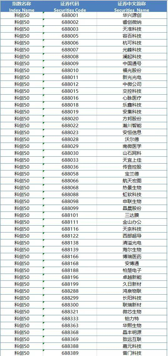 另一个重要的消息是,上交所同日还公布了上证科创板50成份指数。