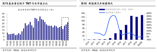 科技+券商为主线,阶段性关注低估行业的修复。我们前期多篇报告研究过,19/1/4开启的这轮牛市主线是科技+券商,即这是转型升级牛市,类似1980-2000年的美股,产业结构升级是核心,金融结构调整是支撑,详见《我们终将俯瞰现在——再论当前中国类似1980年代美国-20191217》、《回顾美国1980-2000年科技长牛-20200109》等。科技基本面未来将更强,一方面中国正处于5G技术引领的新一轮科技周期,5G带来的技术革命正不断应用和推广,另一方面新基建落地将助力相关领域崛起。其中应重点关注新能源汽车和计算机,新能源汽车今年重启补贴,下半年业绩增速有望明显提升;计算机行业不仅受益于新基建的多个领域,并且依据科技周期下硬件-软件-内容-应用场景的传导规律,过去一年硬件业绩突出,下一阶段软件将迎来发展,故计算机有望崛起。从配置角度看TMT行业,20Q1基金重仓股(剔除港股)中TMT整体市值占比为26%,目前仅处于历史中位略偏高。对于券商,我们前期报告《策略看好券商的逻辑-20200707》强调金改将改变券商业态,当前中国产业结构升级目标类似美国,即大力发展科技产业,融资结构也将对标,然而美国券商ROE13%、中国仅6%,我们认为金改最终将提高券商ROE,此外,从短期看当前市场已进入本轮牛市3浪上涨阶段,成交量放大也将推高券商业绩。除主线外,银行地产、石化煤炭等前期低估板块具备阶段性修复的机会。一方面我们预期下半年基本面将恢复至疫情前的正常水平,银行地产、石化煤炭的补涨需要宏观经济数据的支持,另一方面国企改革也将进一步催化石化煤炭这类国企占比高的行业估值修复。
