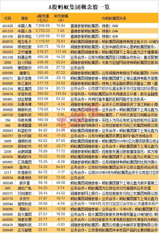 蚂蚁集团概念股出炉