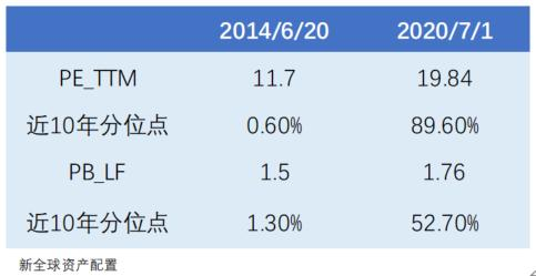 联想到2014至2015年的牛市情况,我们提取了当年牛市初期的估值情况来对比,结果如下: