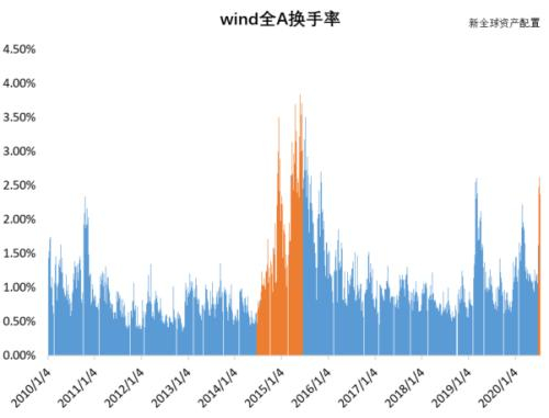 换个角度,从换手率来看,此次的资金情绪也绝对算得上是火爆。从万德全A指数来看,换手率已经逼近当年牛市的中高点位的位置。简单统计,7月以来十几个交易日,万德全A指数平均换手率,达到了14至15年的牛市中70%的位置。