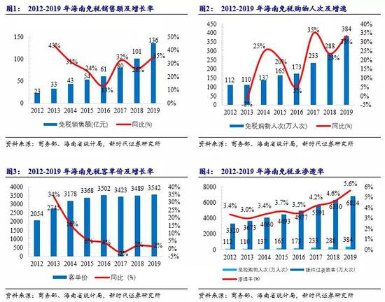根据海南省统计局数据,2019年,海南全省免税销售额136亿元,同比增长35%。全省免税购物人次384万人次,同比增长33%;客单价3542元/人,同比增长2%。我国作为最大的消费市场,免税品的销售规模基数明显偏低,未来潜力巨大。