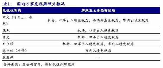 6家免税公司牌照范围、经营特色各有不同,行业为“一超多强”格局