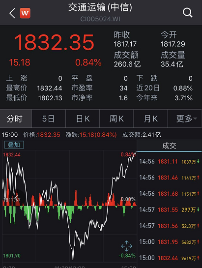交通运输板块收涨0.84%,海南高速涨停,东方航空涨超7%,吉祥航空、南方航空、中国国航升逾4%,厦门空港、上海机场涨超3%。