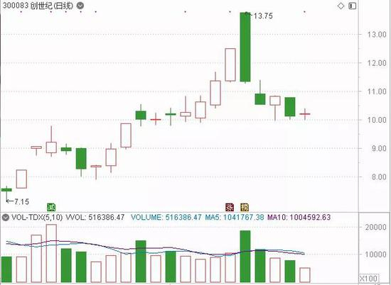 实际上新城市出现的“天地板”并非个案,而早在8月10日,创世纪也遭遇了“天地板”的尴尬。从创世纪近期的股价表现来看,可谓强势无疑,每隔两天都来根大阳线甚至是涨停板,从今年5月29日至8月7日,公司股价区间涨幅达157%,尤其是进入7月以来,公司股价进入加速状态,期间出现多次涨停。从该股成交量来看,阳线缩量,阴线放量,出货迹象明显,到了8月7日,公司股价强势涨停,在8月10日,公司股价几乎以涨停价开盘,不过之后便迅速跳水,开盘后卖单急剧抛出,把股价瞬间砸绿,收盘下跌9.52%。当日高位买入的投资惨遭套牢,在8月11日,公司股价再度下跌7.07%。从8月10日龙虎榜数据来看,在卖出前五席位上,合计卖出38341万元;其中深股通专用席位卖出17419万元,而另外三个机构专用席位合计卖出16352万元。