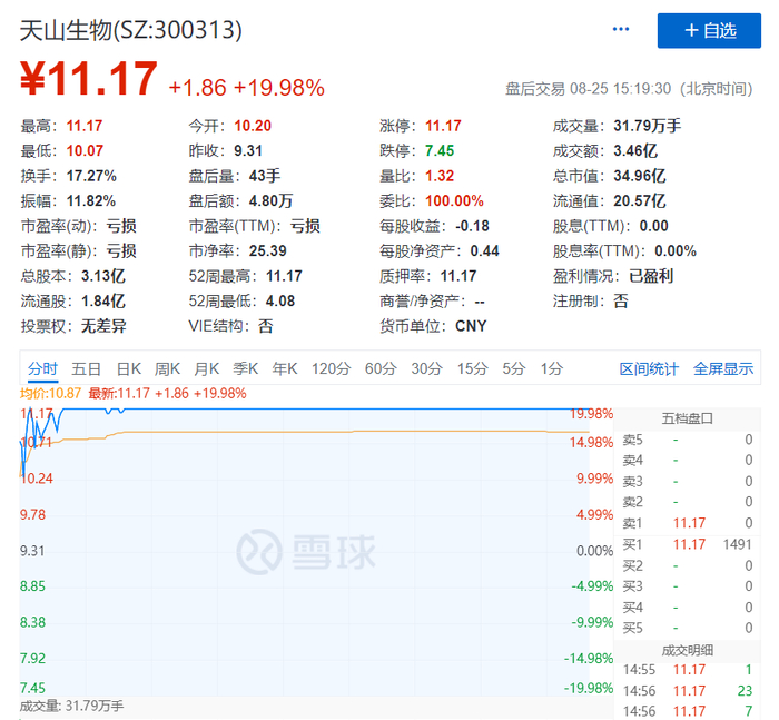天山生物、坚瑞沃能两只低价低位的创业板老股走出2连板,短短两天就大涨44%!