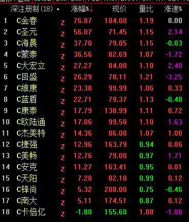 创业板老股中,有十多只股票涨幅超过18%.