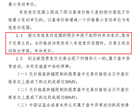 创业板关于“价格笼子”的表述,是超过限价的报价“休眠”,暂存于主机,待价格波动进入有效竞价范围后,原报单将“复活”,参加竞价。