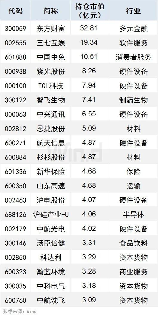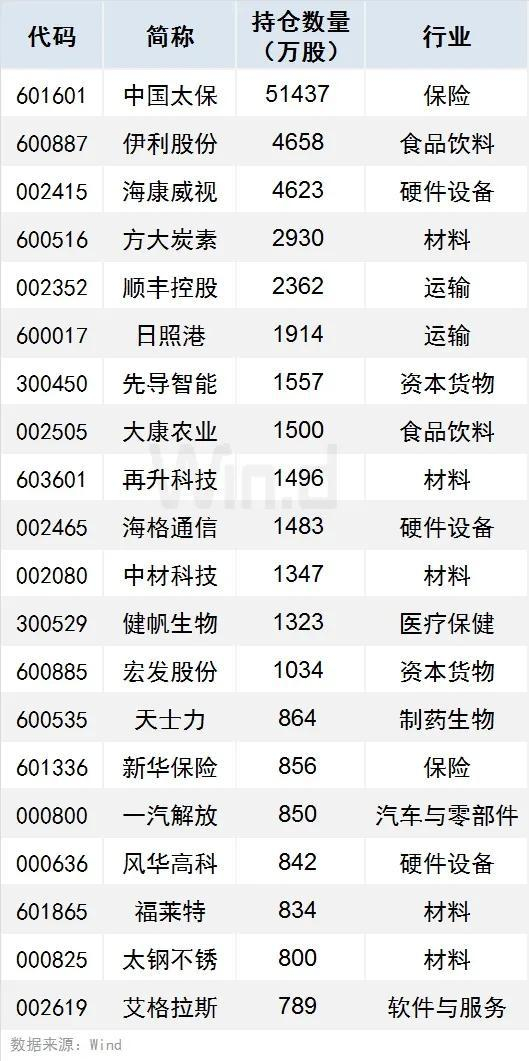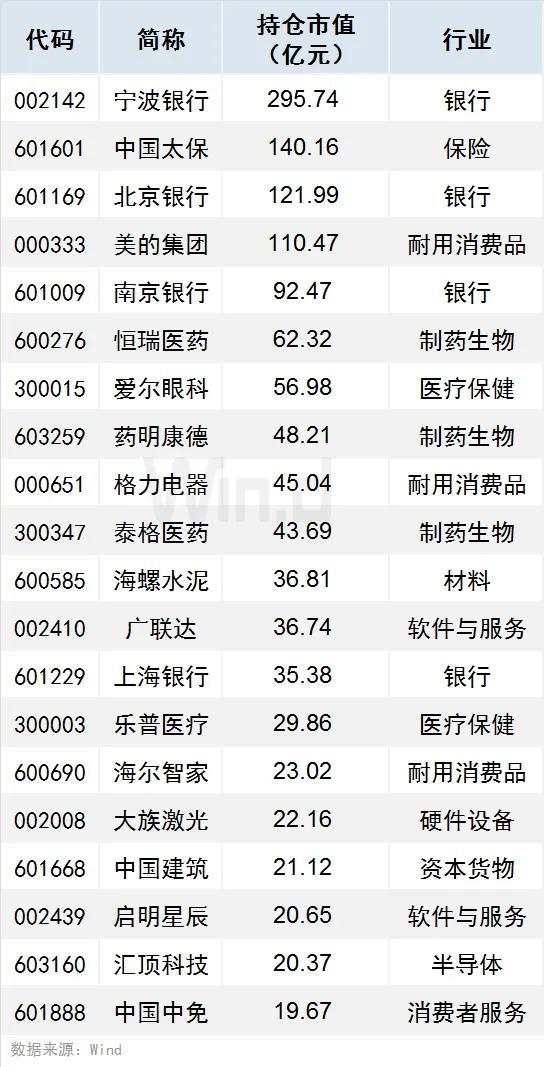 1、有31只个股持仓市值超10亿元(含10亿),宁波银行、中国太保、北京银行持仓市值居前,分别达295.74亿元、140.16亿元、121.99亿元。