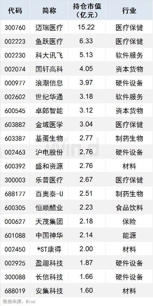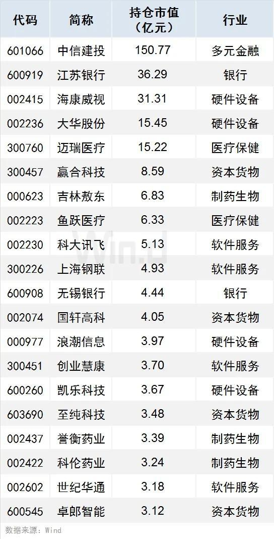 1、有88只个股持仓市值超1亿元(含1亿),中信建投、江苏银行、海康威视持仓市值居前,分别达150.77亿元、36.29亿元、31.31亿元。