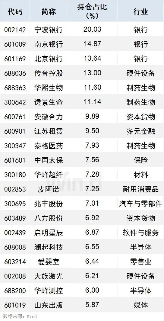 2、有27只个股持仓占比超过5%(含5%),宁波银行、南京银行、北京银行持仓占比居前,分别达20.03%、14.87%、13.64%。