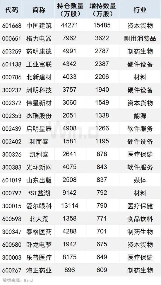 1、增持个股方面,按增持数量计算,QFII二季度重仓个股共有10只获增持数量在千万股以上(含1000万股),其中中国建筑、格力电器、药明康德增持数量居前,分别达15484.83万股、3622.49万股、2786.67万股。
