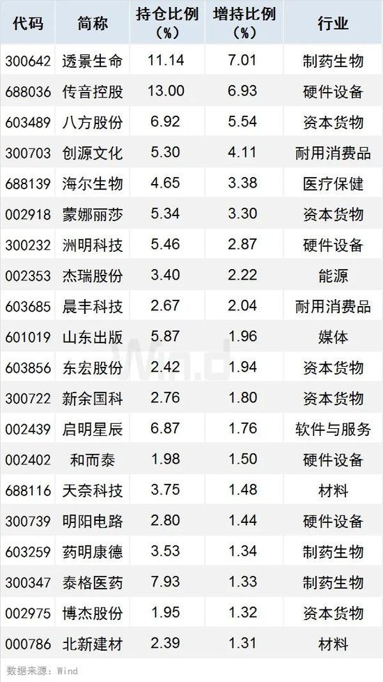 按增持比例计算,QFII二季度重仓个股共有26只获增持比例超过1%(含1%),其中透景生命、传音控股、八方股份增持比例居前,分别达7.01%、6.93%、5.54%。