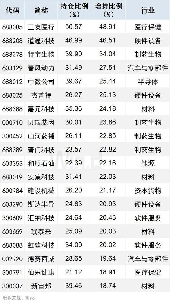 按增持比例计算,基金二季度重仓个股共有296只获增持比例超过5%(含5%),其中三友医疗、道通科技、特宝生物增持比例居前,分别达48.91%、46.51%、34.04%。