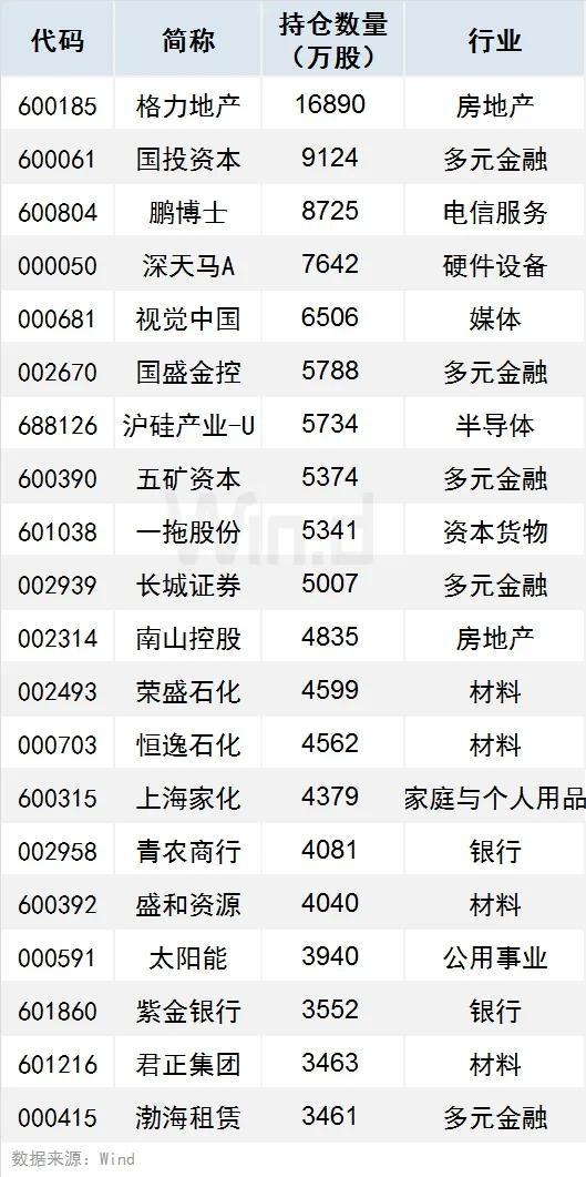 2、新进个股方面,按持仓数量计算,基金二季度新进重仓个股共有86只持仓数量在千万股以上(含1000万股),其中格力地产、国投资本、鹏博士持仓数量居前,分别达16890.43万股、9124.34万股、8724.62万股。