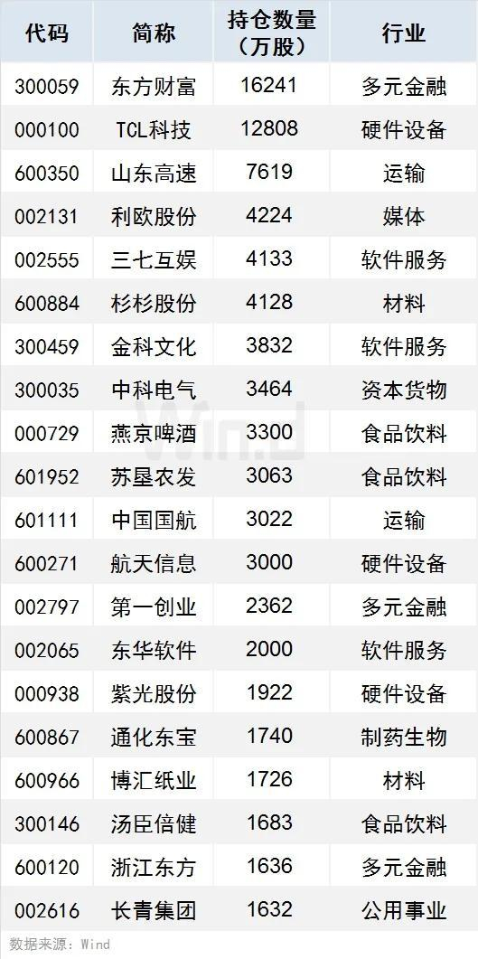 2、新进个股方面,按持仓数量计算,社保基金二季度新进重仓个股共有35只持仓数量在千万股以上(含1000万股),其中东方财富、TCL科技、山东高速持仓数量居前,分别达16240.88万股、12808.05万股、7618.83万股。