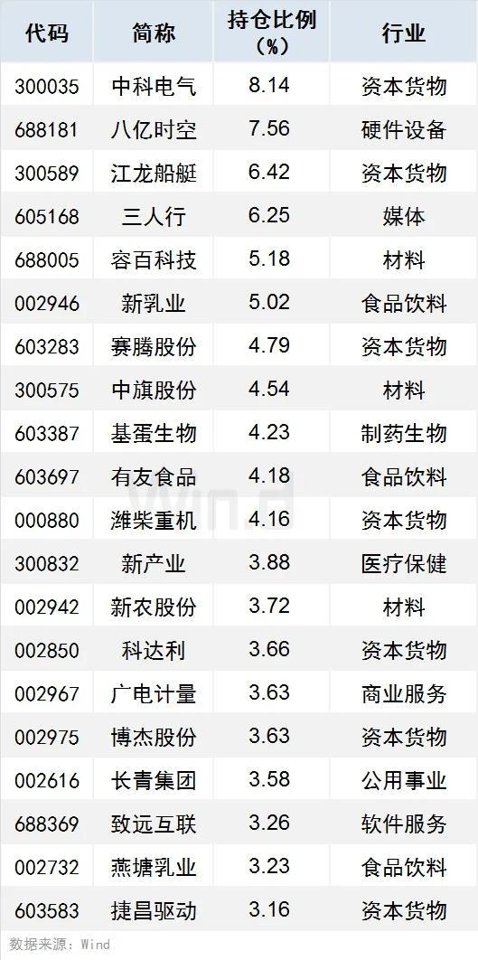 按持仓比例计算,社保基金二季度新进重仓个股共有21只持仓比例超过3%(含3%),其中中科电气、八亿时空、江龙船艇持仓比例居前,分别达8.14%、7.56%、6.42%。